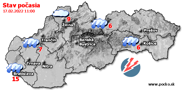 Stav počasia - Slovensko (17.02.2022 o 12.00 hod.)