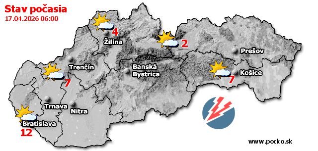 Stav počasia - Slovensko (17.04.2026 o 6.00 hod.)