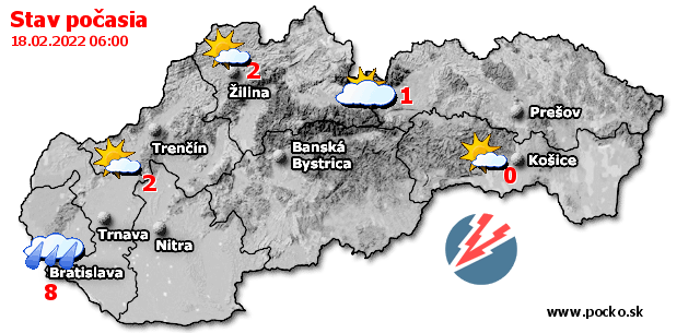 Stav počasia - Slovensko (18.02.2022 o 6.00 hod.)
