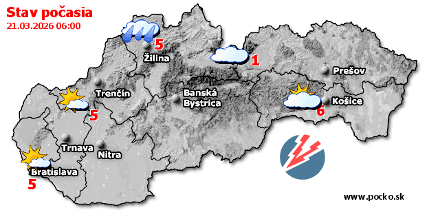 Stav počasia - Slovensko (21.03.2026 o 6.00 hod.)