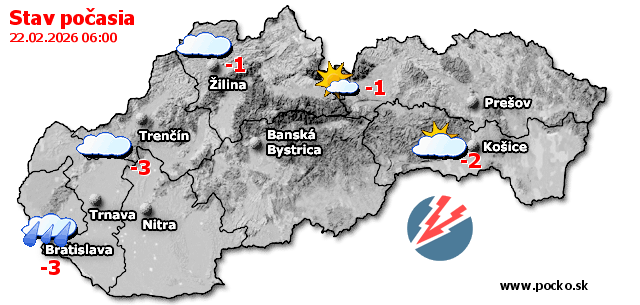 Stav počasia - Slovensko (22.02.2026 o 6.00 hod.)