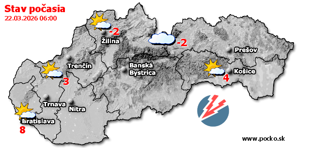 Stav počasia - Slovensko (22.03.2026 o 6.00 hod.)