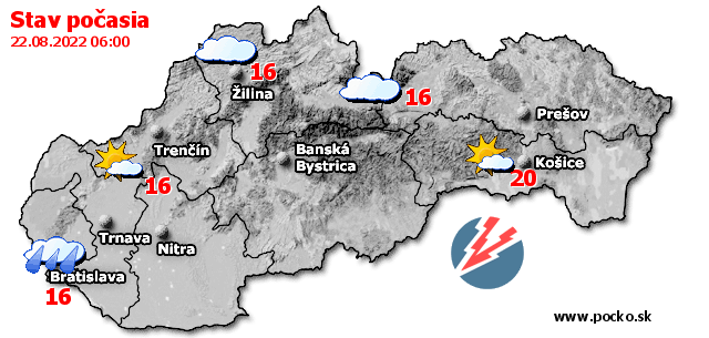 Stav počasia - Slovensko (22.08.2022 o 6.00 hod.)