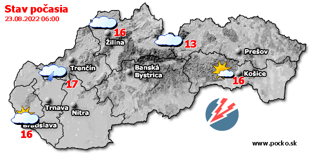Stav počasia - Slovensko (23.08.2022 o 6.00 hod.)