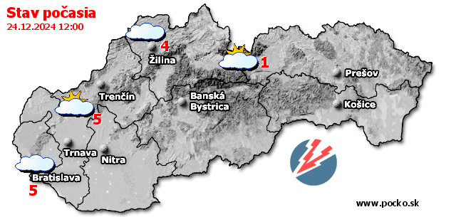 Stav počasia - Slovensko (24.12.2024 o 12.00 hod.)