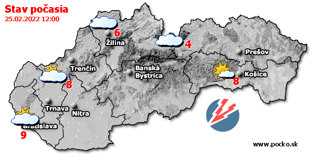 Stav počasia - Slovensko (25.02.2022 o 12.00 hod.)