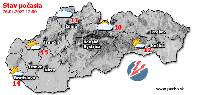 Stav počasia - Slovensko (26.04.2022 o 12.00 hod.)