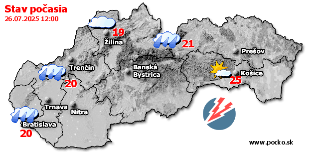 Stav počasia - Slovensko (26.07.2025 o 12.00 hod.)