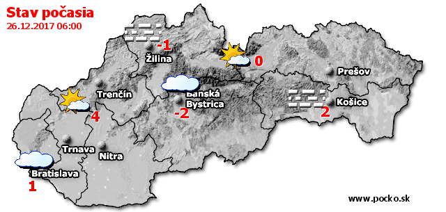 Stav počasia - Slovensko (26.12.2017 o 6.00 hod.)