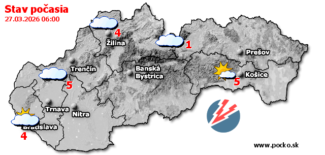 Stav počasia - Slovensko (27.03.2026 o 6.00 hod.)