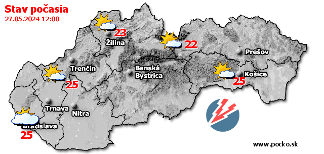 Stav počasia - Slovensko (27.05.2024 o 12.00 hod.)