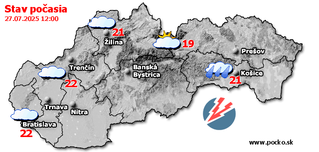 Stav počasia - Slovensko (27.07.2025 o 12.00 hod.)