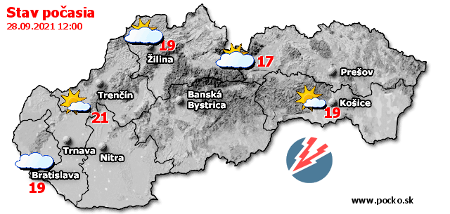Stav počasia - Slovensko (28.09.2021 o 12.00 hod.)