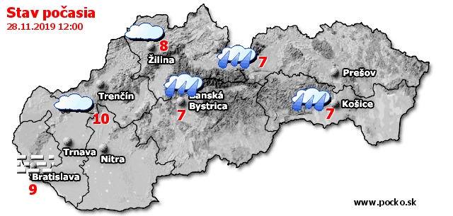 Stav počasia - Slovensko (28.11.2019 o 12.00 hod.)