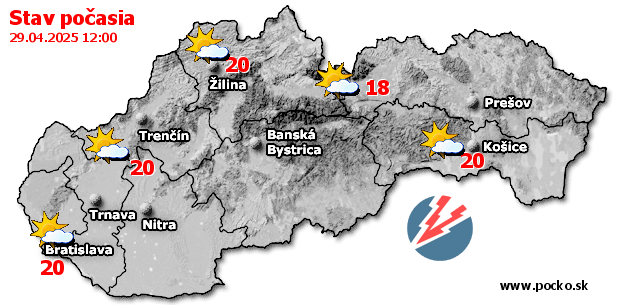 Stav počasia - Slovensko (29.04.2025 o 12.00 hod.)