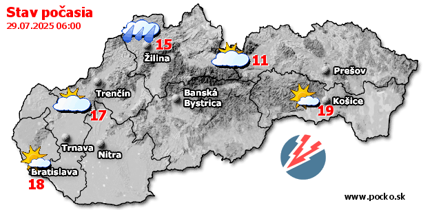 Stav počasia - Slovensko (29.07.2025 o 6.00 hod.)