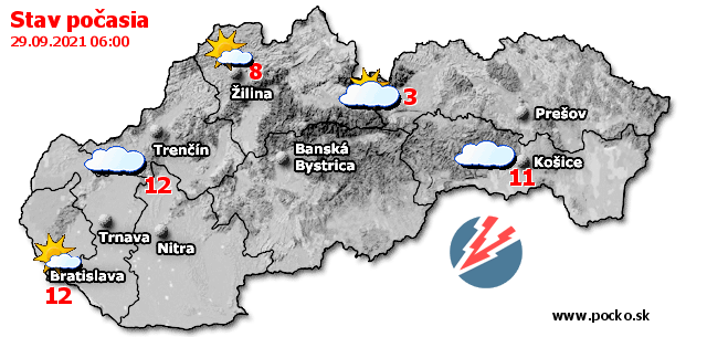 Stav počasia - Slovensko (29.09.2021 o 6.00 hod.)