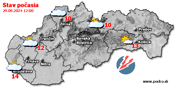 Stav počasia - Slovensko (29.09.2024 o 12.00 hod.)
