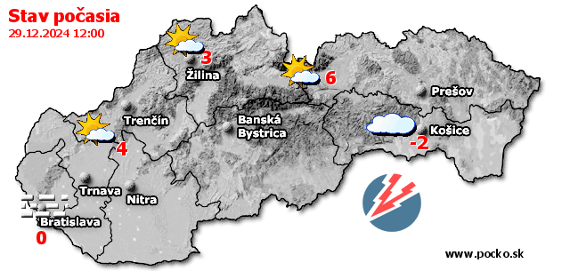 Stav počasia - Slovensko (29.12.2024 o 12.00 hod.)