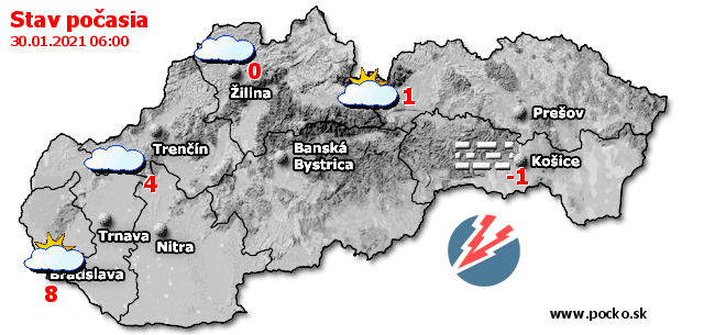 Stav počasia - Slovensko (30.01.2021 o 6.00 hod.)