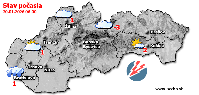 Stav počasia - Slovensko (30.01.2026 o 6.00 hod.)