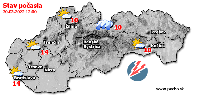 Stav počasia - Slovensko (30.03.2022 o 12.00 hod.)