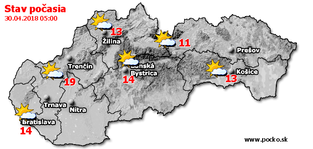 Stav počasia - Slovensko (30.04.2018 o 6.00 hod.)