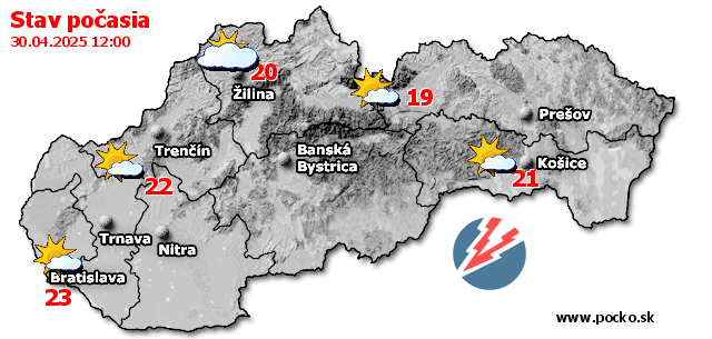 Stav počasia - Slovensko (30.04.2025 o 12.00 hod.)