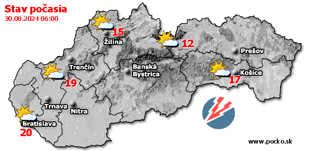 Stav počasia - Slovensko (30.08.2024 o 6.00 hod.)