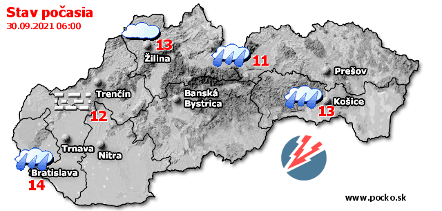 Stav počasia - Slovensko (30.09.2021 o 6.00 hod.)