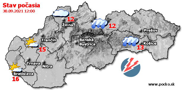 Stav počasia - Slovensko (30.09.2021 o 12.00 hod.)