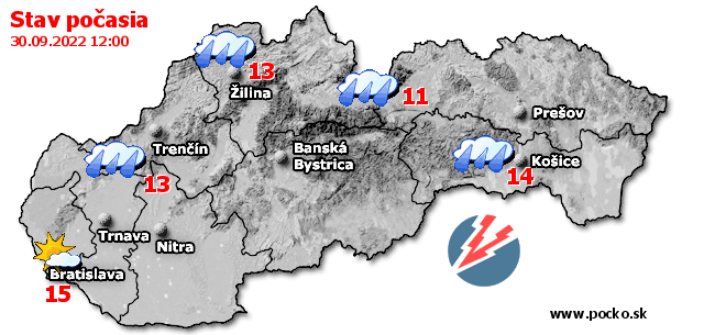 Stav počasia - Slovensko (30.09.2022 o 12.00 hod.)
