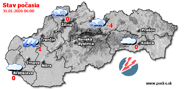 Stav počasia - Slovensko (31.01.2026 o 6.00 hod.)