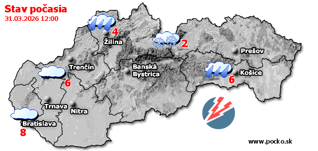 Stav počasia - Slovensko (31.03.2026 o 12.00 hod.)