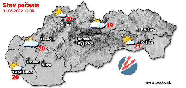 Stav počasia - Slovensko (31.05.2022 o 12.00 hod.)