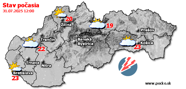 Stav počasia - Slovensko (31.07.2025 o 12.00 hod.)