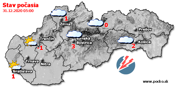 Stav počasia - Slovensko (31.12.2020 o 6.00 hod.)